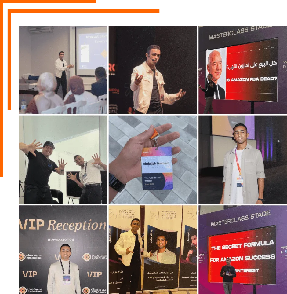 لقد كنت متحدثًا في العديد من الفعاليات العالمية مثل WorldEF Dubai و IED Istanbul، حيث تحدثت عن فرص البيع على أمازون وكيفية النجاح في هذا السوق.